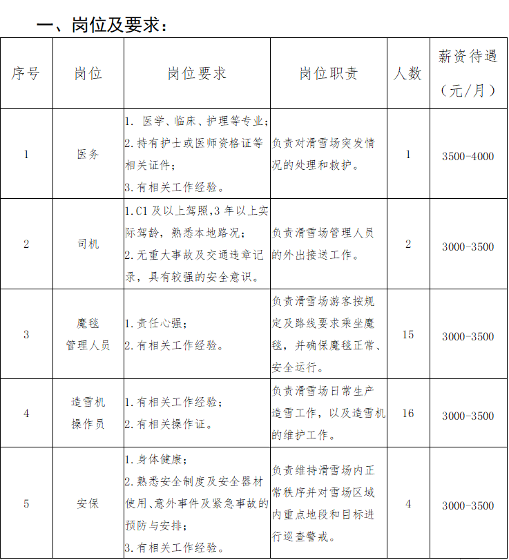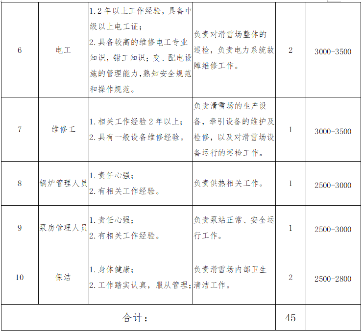 蘭州新區(qū)冰雪新天地滑雪場(chǎng)是以戲雪娛樂(lè)為主,大眾滑雪為輔的綜合型四季滑雪場(chǎng)。因滑雪場(chǎng)開(kāi)業(yè)在即,為滿足運(yùn)營(yíng)需求,特公開(kāi)招聘相關(guān)崗位工作人員45名。